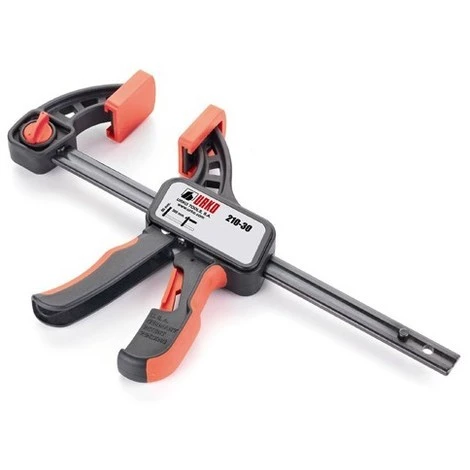 Tête en nylon renforcées avec fibre de verre. Supports de protection en plastique souple pour des serrages délicats.Travail dcartement.Poignée anti-glissante ergonomique.Bouton déblocage instantané. Idéal pour les travaux de serrage lourds ( 200 kg max). Modèle N° 210.