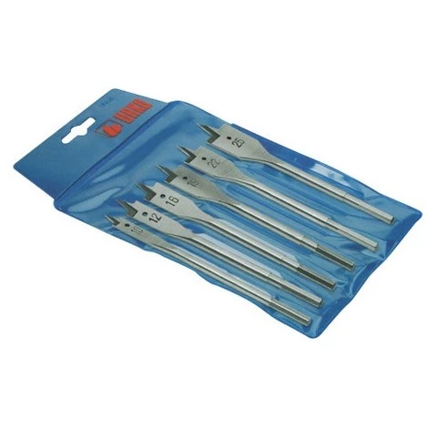 Asssortiment de 10 mèches à bois plate D. 10 12 16 19 22 25 30 32 et 35 mm. Trempé et rectifié à 100%. Emmanchement 1/4 ».. Modèle N° 860.