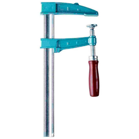 Mors en fonte Nodulaire d’Acier (Plus resistance que la fonte malléable). Vis trapezoidale, plus de force de serrage à moindre effort. Lubrication permanente de la vis. Rotule avec grand angle de rotation. Tige etirée à froid, profilée à double crantage. Frein en acier trempé non apparent. Garantie totale de freinage. Poignée ergonomique en bois. Presse à Vis N°4.